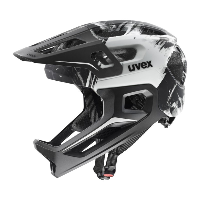 uvex react jr. fullface to kask full-face dla młodych riderów spragnionych mocnych wrażeń. Niezależnie od tego, czy mkną po górskich singlach, kręcą rundy na pumptracku, czy szlifują triki w skateparku – ten kask stawia przede wszystkim na bezpieczeństwo.