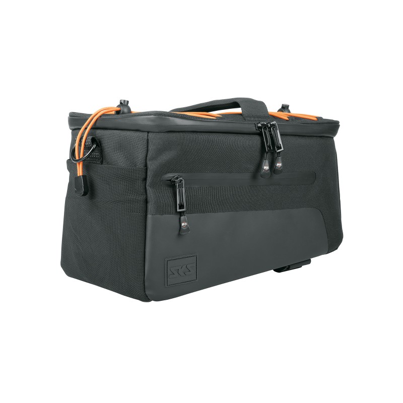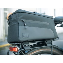 Wytrzymała, stylowa i elastyczna torba INFINITY URBAN TRUNKBAG wykonana z wodoodpornego materiału sprawdzi się podczas zakupów, dojazdów do pracy i podróży. Idealnie pasuje do bagażnika INFINITY UNIVERSAL, ale można ją również zamontować na wszystkich popularnych bagażnikach. Torba jest kompatybilna z systemami adapterów MIK, AVS, MonkeyLoad, Racktime, XLC CarryMore / i-Rack oraz KLICKfix. Adaptery są mocowane do spodu torby za pomocą śrub, co oznacza, że można z łatwością wykorzystać istniejące płyty bagażnika. Można ją również zamontować za pomocą rzepów Hypalon, które można skrócić. Dodatkowy pasek można opcjonalnie przymocować do sztycy siodełka.