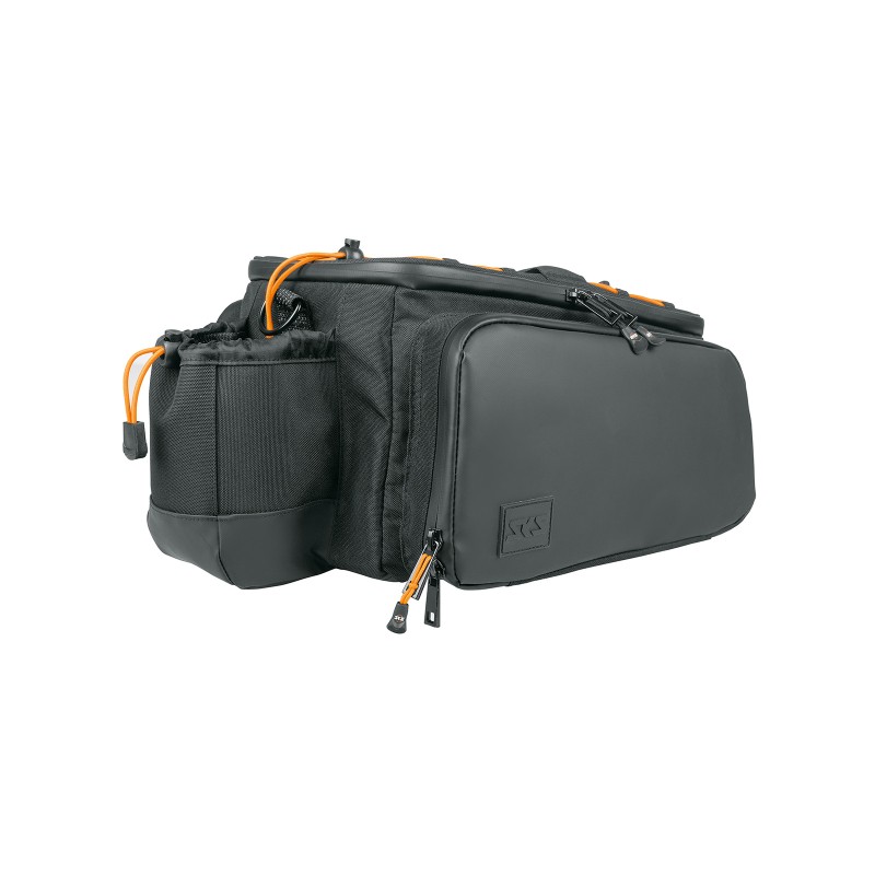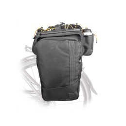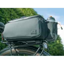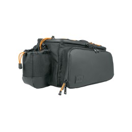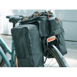 Wodoodporna torba INFINITY URBAN TRUNKBAG XL. Dzięki dwóm rozkładanym bocznym kieszeniom zapinanym na suwak, pojemność można łatwo dostosować do potrzeb. Torba idealnie pasuje do bagażnika INFINITY UNIVERSAL, ale można ją również zamontować na wszystkich popularnych bagażnikach. Jest kompatybilna z systemami adapterów MIK, AVS, MonkeyLoad, Racktime, XLC CarryMore / i-Rack oraz KLICKfix. Adaptery można przymocować do spodu torby za pomocą śrub, dzięki czemu można wykorzystać istniejące płyty bagażnika. Z drugiej strony, można ją również zamontować za pomocą pasków rzepowych Hypalon, które można skrócić. Paski na bocznych kieszeniach zapewniają bezpieczne mocowanie do stelaża bagażnika. Dodatkowy pasek można opcjonalnie przymocować do sztycy siodełka.