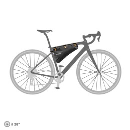 Torba Frame-Pack RC jest przeznaczona do transportu ciężkich rzeczy, na przykład narzędzi lub jedzenia, dzięki centralnemu położeniu blisko ramy roweru. Mocne i wytrzymałe paski Velcro zapewniają bezpieczne mocowanie torby wewnątrz trójkąta ramy roweru, a zwijane zamknięcie zabezpieczane trzema gumkami daje łatwy dostęp do wnętrza. Paski mocujące są regulowane indywidualnie wzdłuż obwodu torby do idealnego dopasowania do geometrii ramy.